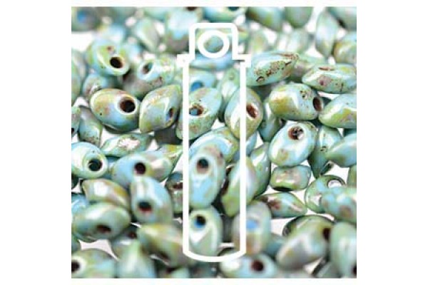 Long Magatama 4x7mm Picasso Sf Grn Matte-appx 8.5 Gm (4514)