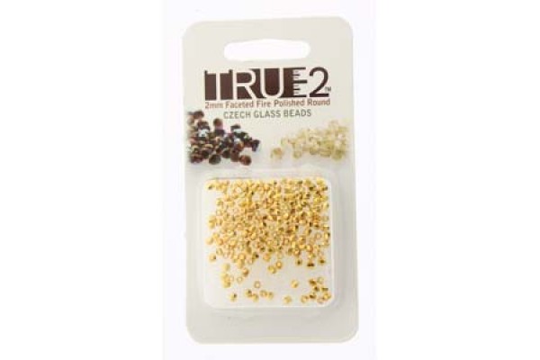 Fire Polish True 2mm Crys 24k Gold Plt Aprx 2gm