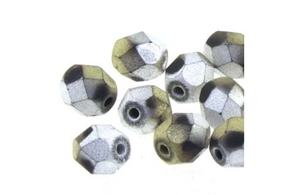 Fire Polish 4mm Matt Cali Silver 40 Bds/st 10st/bg