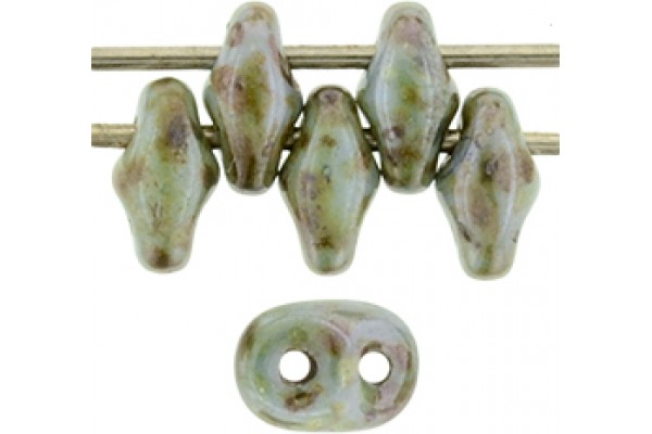 SuperDuo бусины, размер - 5х2мм, цвет - Luster - Green/Opaque White , номер цвета - LN03000, упаковка - 100гр