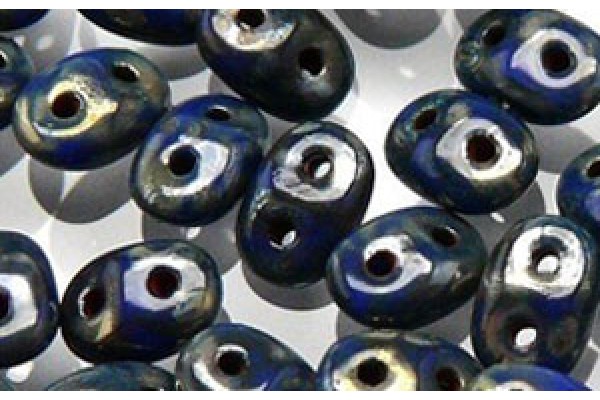 SuperDuo бусины, размер - 5х2мм, цвет - Opaque Blue - Silver Picasso , номер цвета - TP33050, упаковка - 100гр