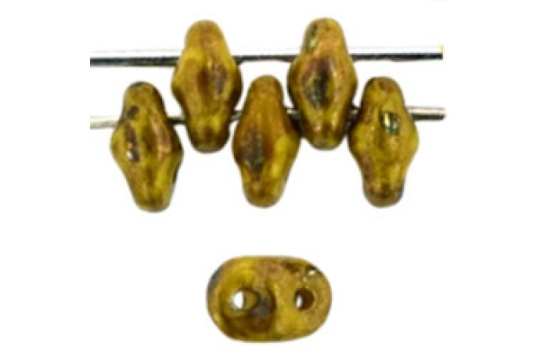 SuperDuo бусины, размер - 5х2мм, цвет - Opaque Yellow - Bronze Picasso , номер цвета - LG83120, упаковка - 100гр