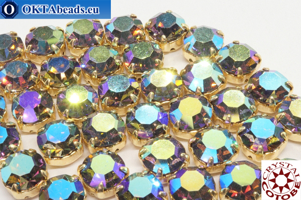 Шатоны COTOBE Crystal. размер - ss39. цвет - Black Diamond AB. цвет цап - Золото. упаковка - 36шт