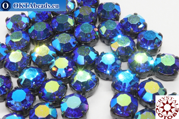 Шатоны COTOBE Crystal. размер - ss39. цвет - Sapphire AB SW. цвет цап - Черные. упаковка - 36шт