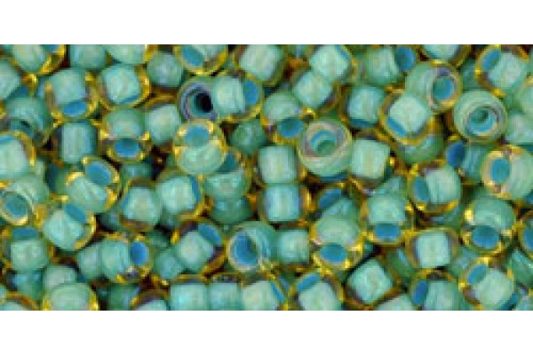 Японский круглый бисер TOHO Beads, размер - 8/0, цвет - Inside-Color Rainbow Lt Topaz/Sea Foam-Lined, номер цвета - 952, упаковка - 250гр.