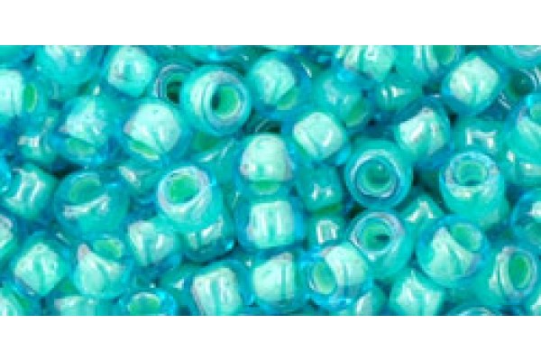Круглый бисер ТОХО 6/0 Inside-Color Aqua/Lt Jonquil-Lined (954) - 250гр