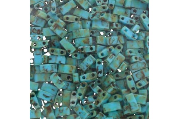 Tila 1/2 Cut Bead 5mm Opaque Turquoise Blue Picasso-50gm/bg