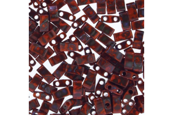 Tila 1/2 Cut Bead 5mm Picasso Opaque Orange-50gm/bg