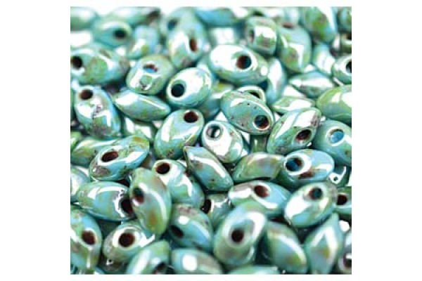 • Long Magatama 4x7mm Picasso Sf Green Luster- 100 Gm (4514L)