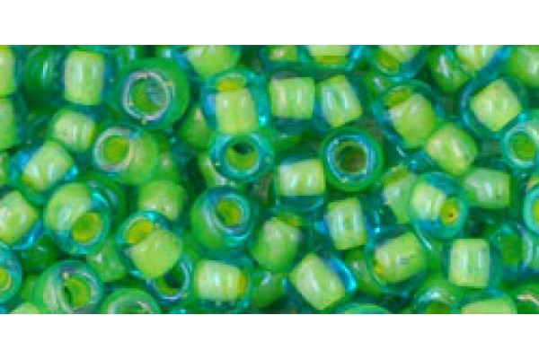 Японский круглый бисер TOHO Beads, размер - 6/0, цвет - Inside-Color Aqua/Opaque Yellow-Lined, номер цвета - 307, упаковка - 250гр.