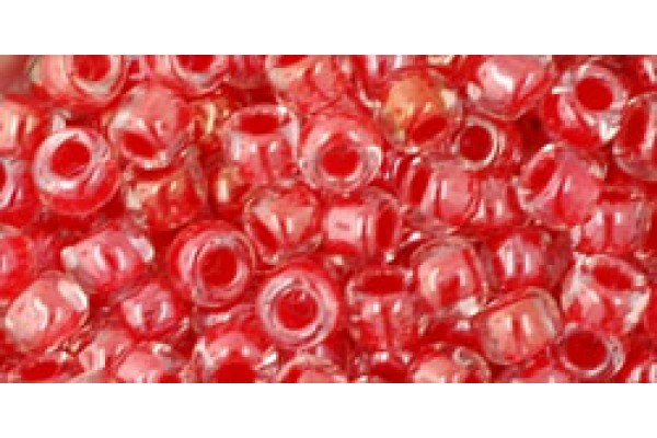 Японский круглый бисер TOHO Beads, размер - 6/0, цвет - Inside-Color Crystal/Tomato-Lined, номер цвета - 341, упаковка - 250гр.